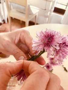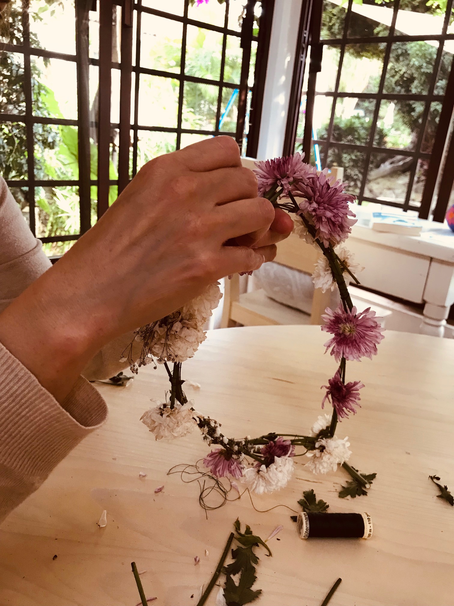 A mediados de septiembre, mi María y yo hicimos unas coronas de flores, y eso me ha dejado un buen recuerdo de este tiempo.