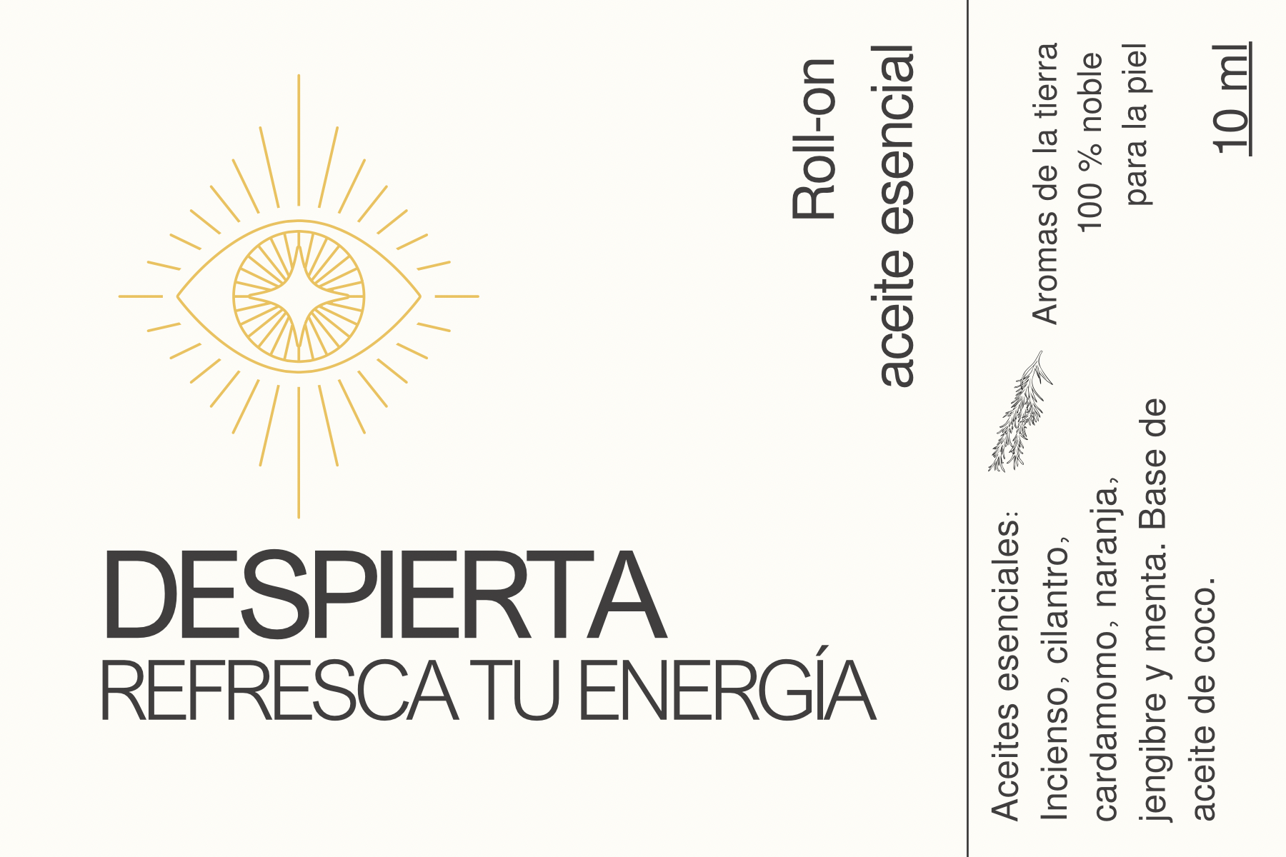 Ingredientes: aceites esenciales de incienso, cilantro, cardamomo, naranja, jengibre y menta. Base de aceite de coco. .~Aromas de la tierra