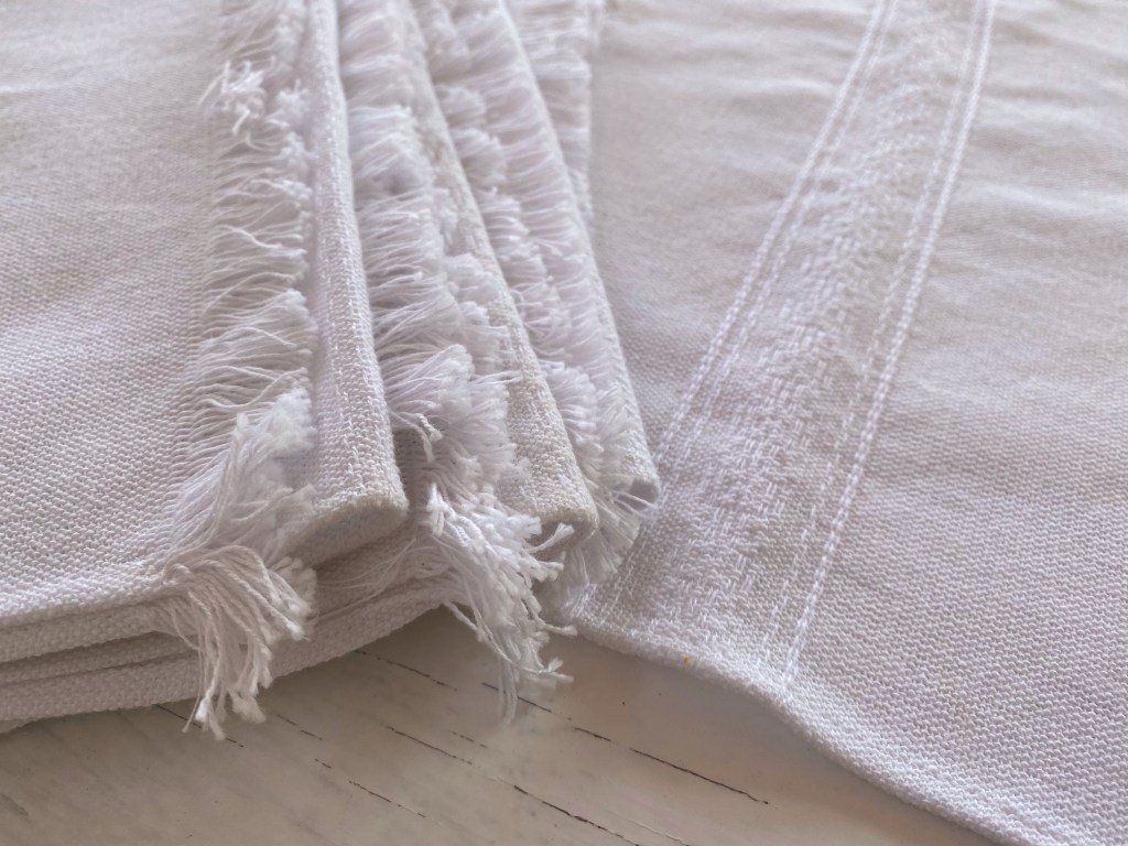 Juego de seis manteles individuales en blanco.