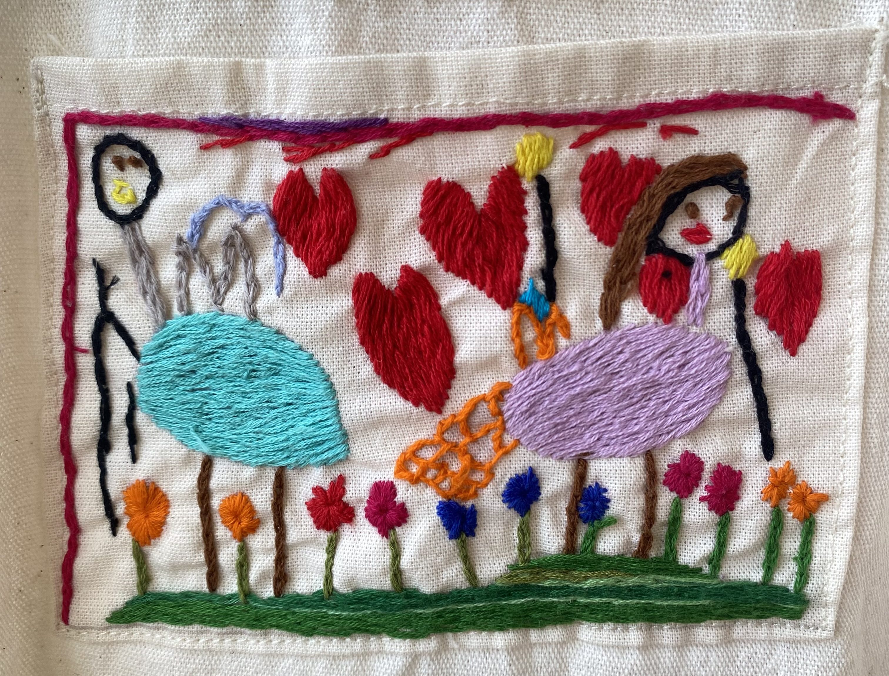 El bordado conserva la libertad del trazo infantil.