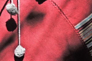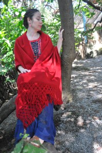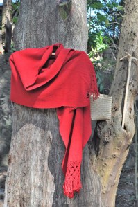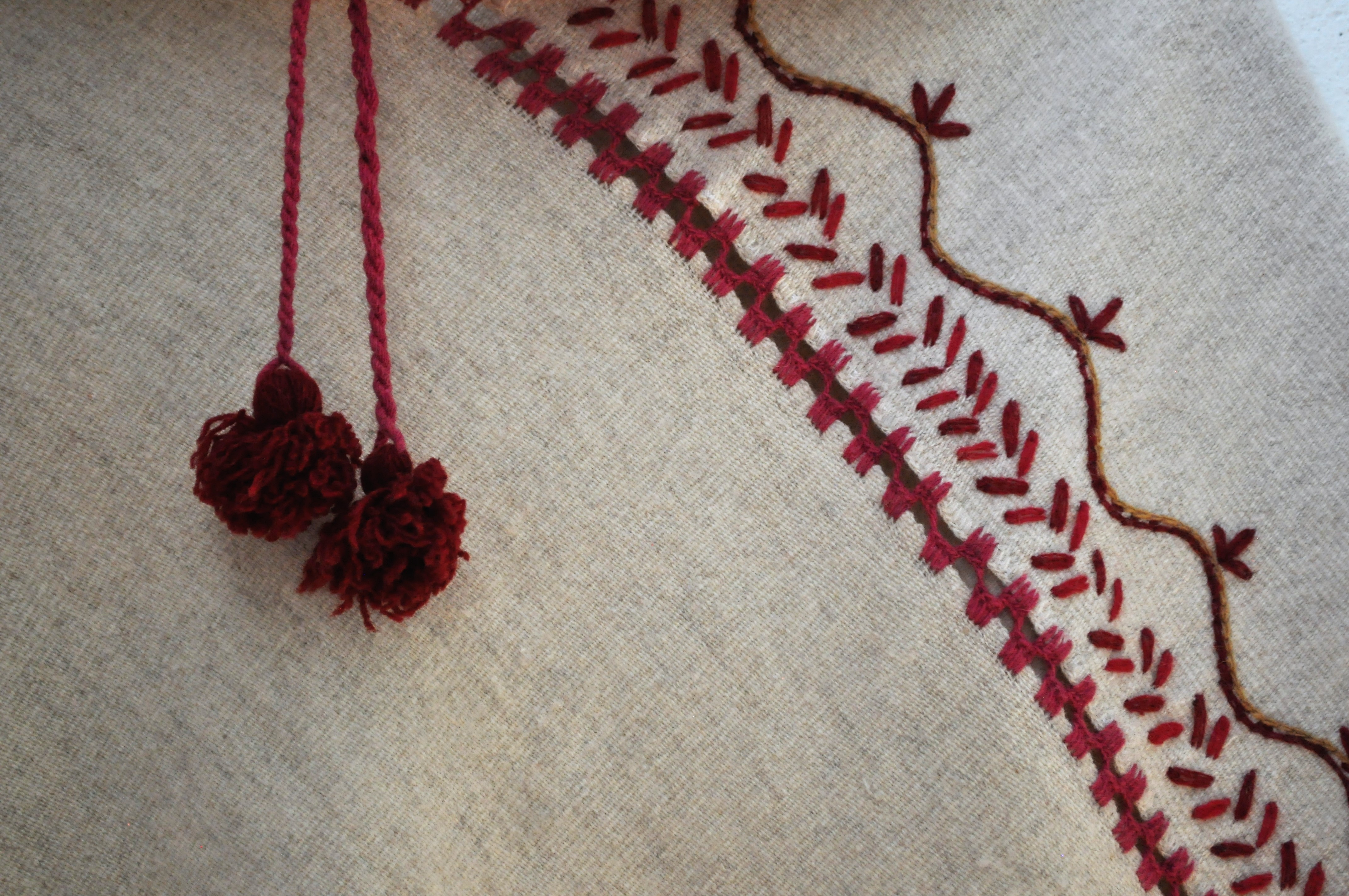Material: Lana natural, delgada e hilo teñido con la grana cochinilla
