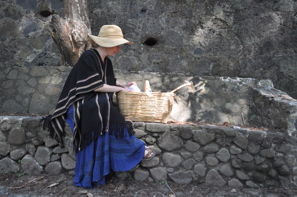 Materiales: hilo de lana, color natural de grana cochinilla, azul añil y flor de pericón